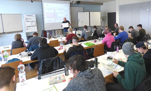 | Carsten Mause, Vertriebsmitarbeiter der Firma Reflex, bringt die Auszubildenden auf den neuesten Stand der Technik. |