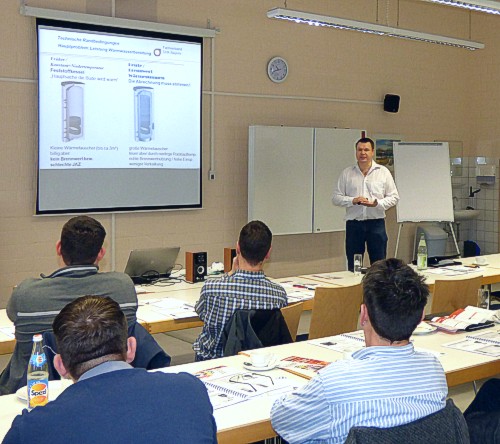 Generelle Voraussetzung, um den Heizungs-Check durchführen zu dürfen und die verschiedenen Fördermöglichkeiten nutzen zu können, ist die Teilnahme an diesem Seminar. Diplom-Ingenieur Klaus Rüttiger und Diplom-Ingenieur (FH) Uwe Redeker vom Fachverband SHK Bayern „heizten“ dabei den 18 Teilnehmern teilweise gehörig ein – auf der Tagesordnung standen dabei folgende Punkte: